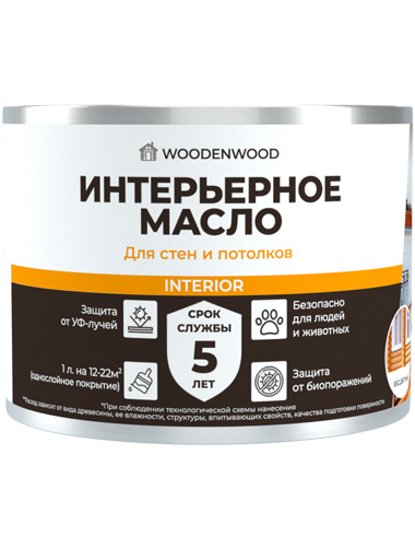 Предназначено для обработки древесины внутри деревянных домов (стены, потолки и т.д.). Защищает обрабатываемую поверхность от различного рода грибов (деревоокрашивающих, плесневых, дереворазрушающих), насекомых-древоточцев. Подчеркивая природную красоту дерева, Интерьерное масло для стен и потолков WOODENWOOD придает вашему дому неповторимый уют.