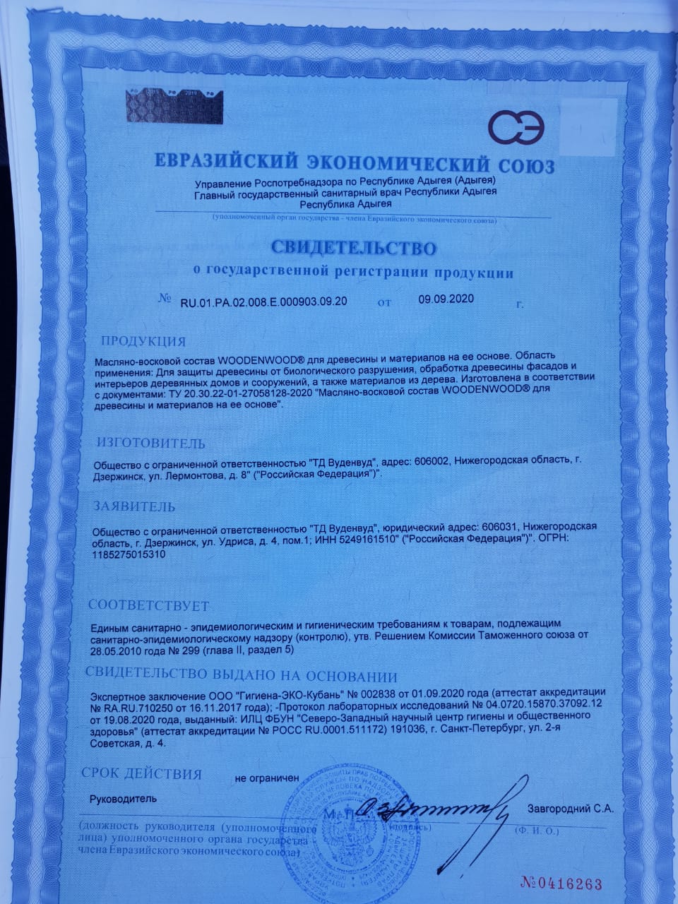 Свидетельство о государственной регистрации продукции